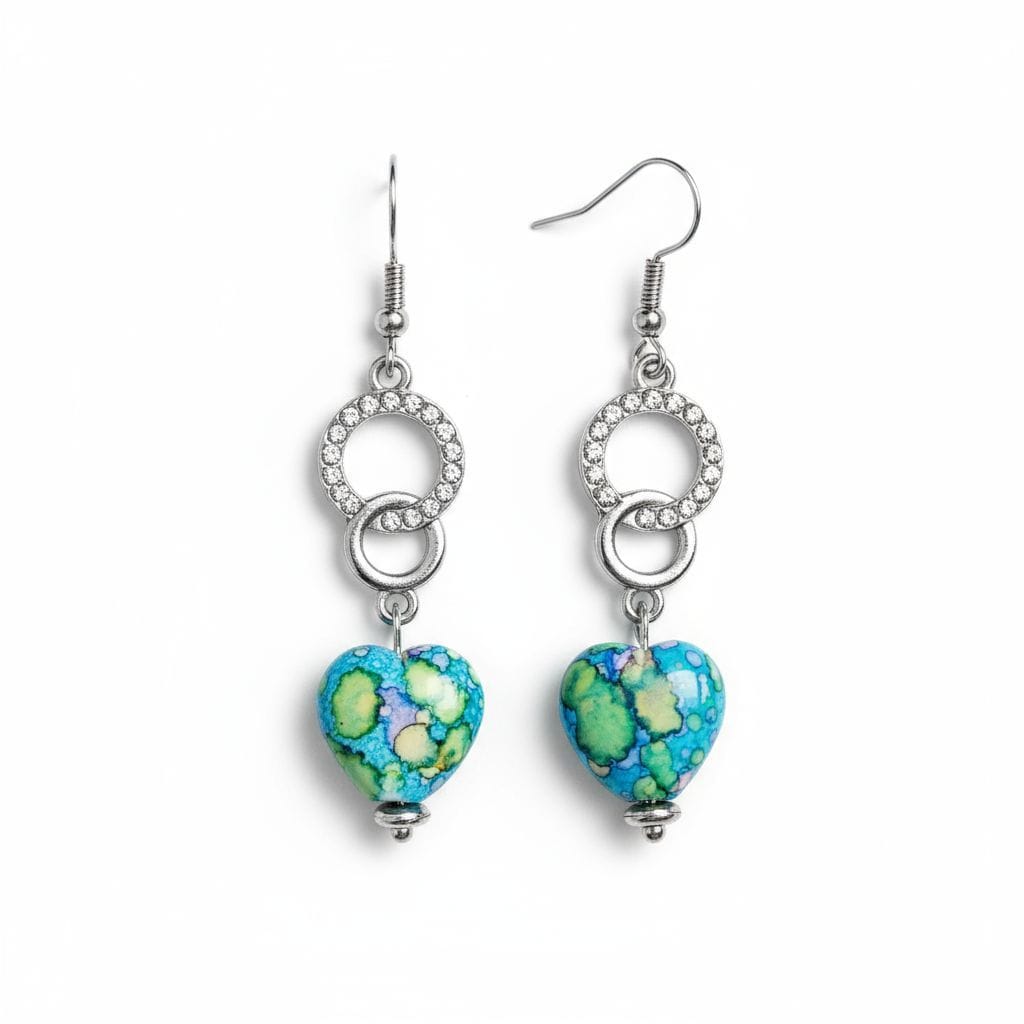 Be the first to review “Blue Speckled Heart with Diamante Charm Earrings”