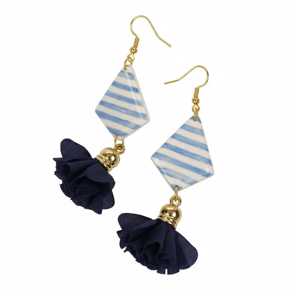 Be the first to review “Striped Pattern with Blue Tassel Earrings”