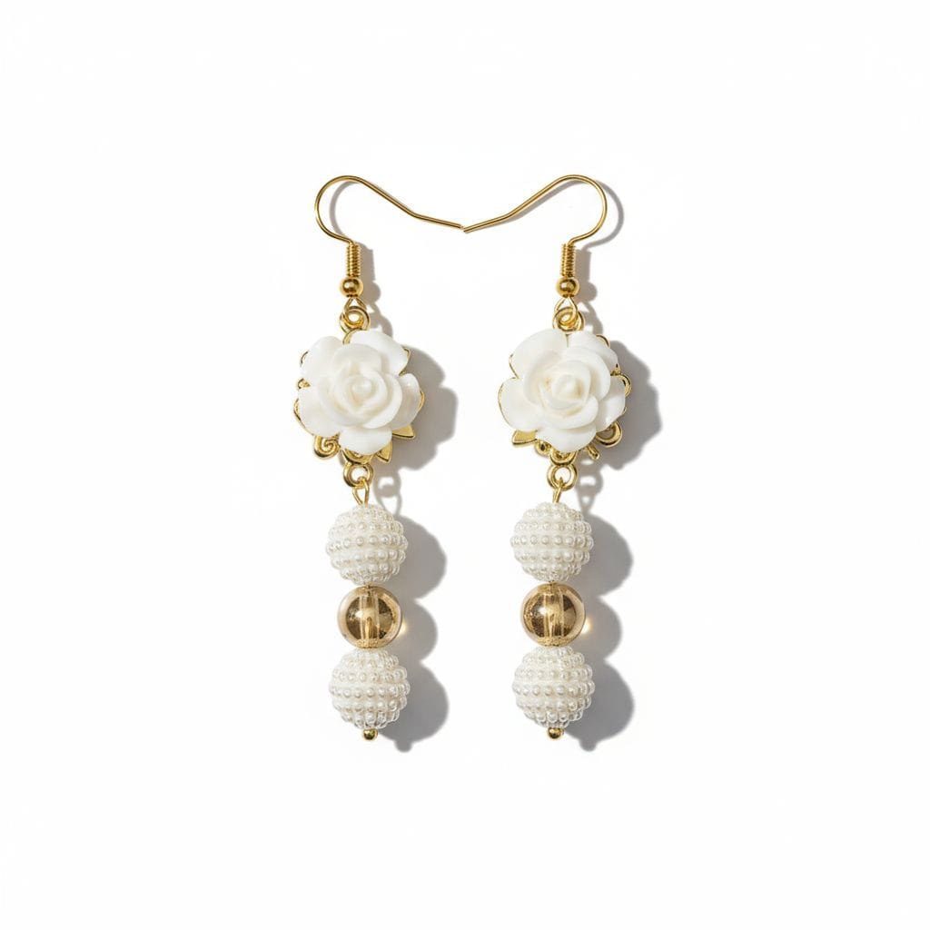 Be the first to review “White Rose Bead Earrings”